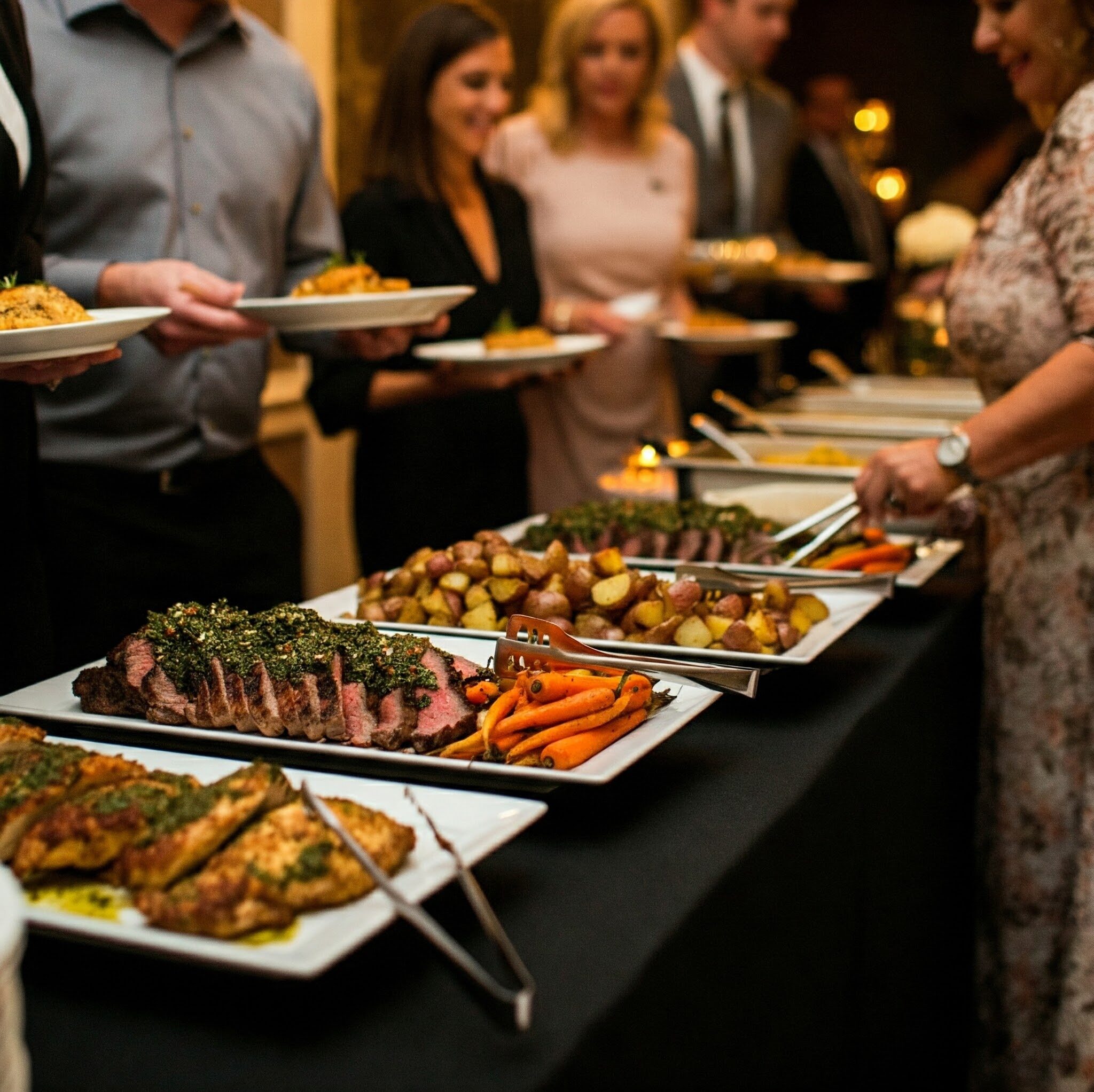 Kitchen-crafted hot entrees • Signature proteins & seasonal sides • Professional setup for group dining
